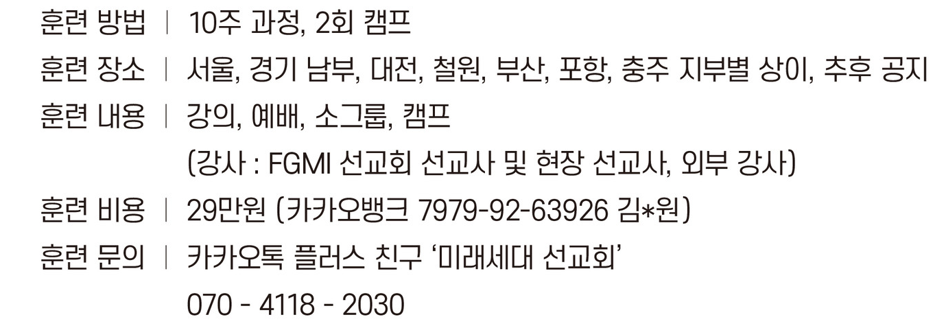 파루시아(그리스도의 재림)를 완성할 미래세대를 세우는 선교훈련 입니다.