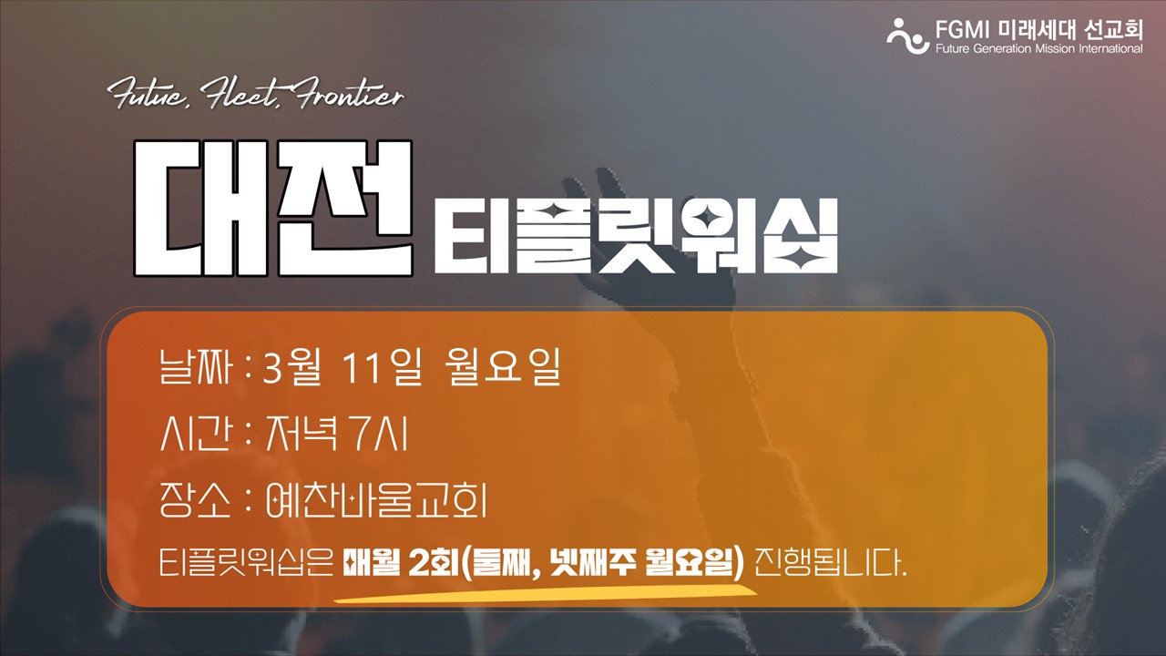 🎵 대전 티플릿워십 정기예배 안내🎶